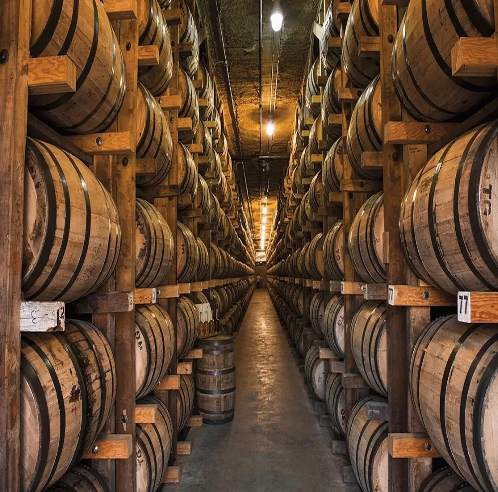 Aged oak custom red wine cellar brick slip wall background.